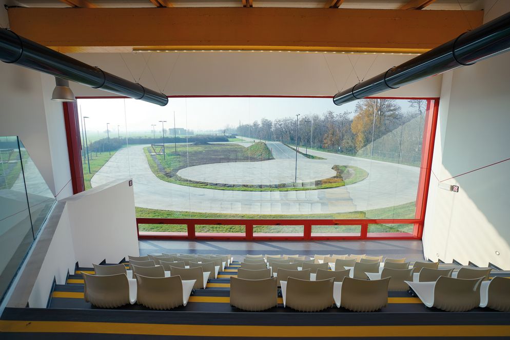 In addition, a covered structure of 400 sq.m. was built to house educational workshops, training classrooms, and a panoramic stand overlooking an area of approximately 20.000 sq.m., dedicated to testing and commissioning construction and agricultural machinery. This area is equipped with a 900-meter-long concrete track.